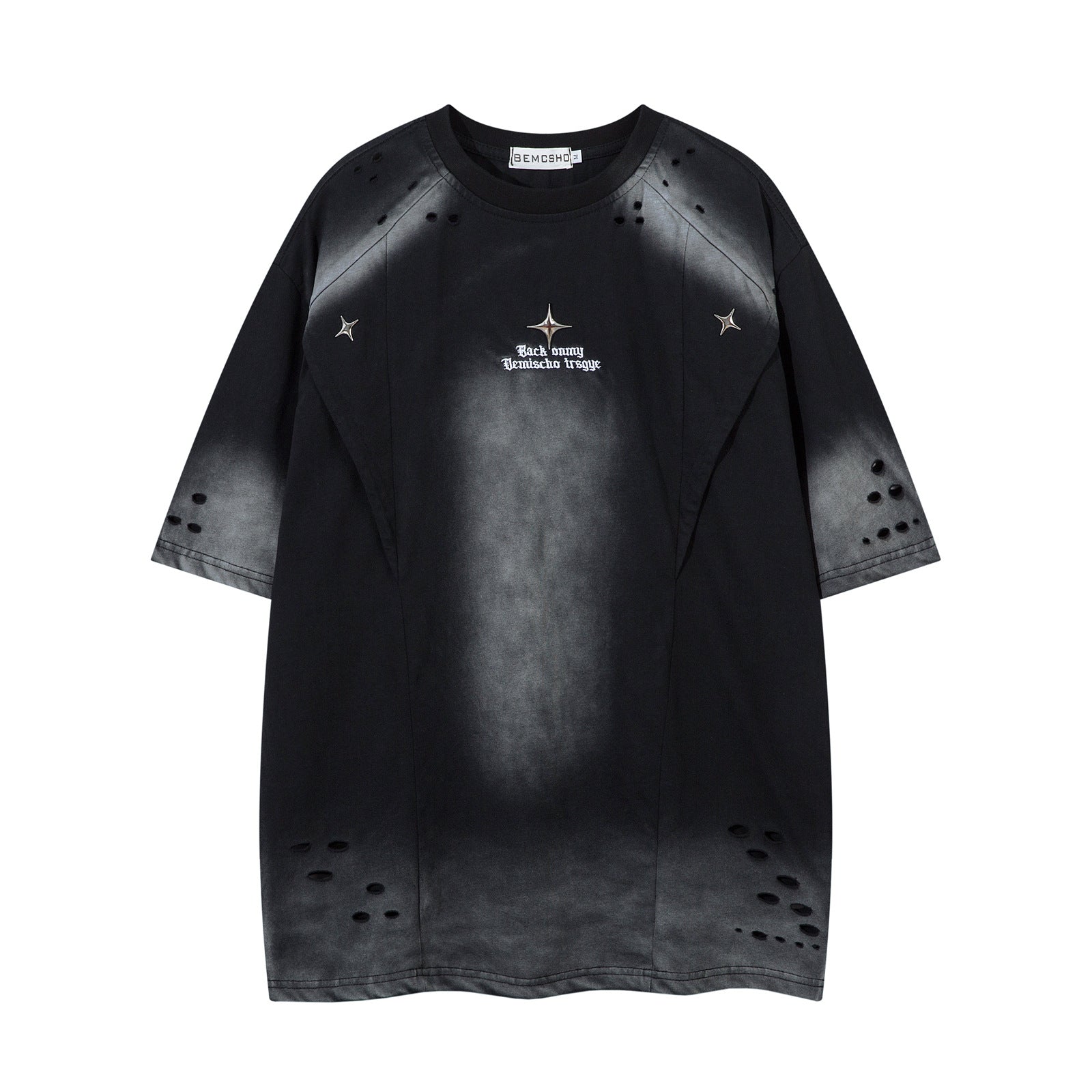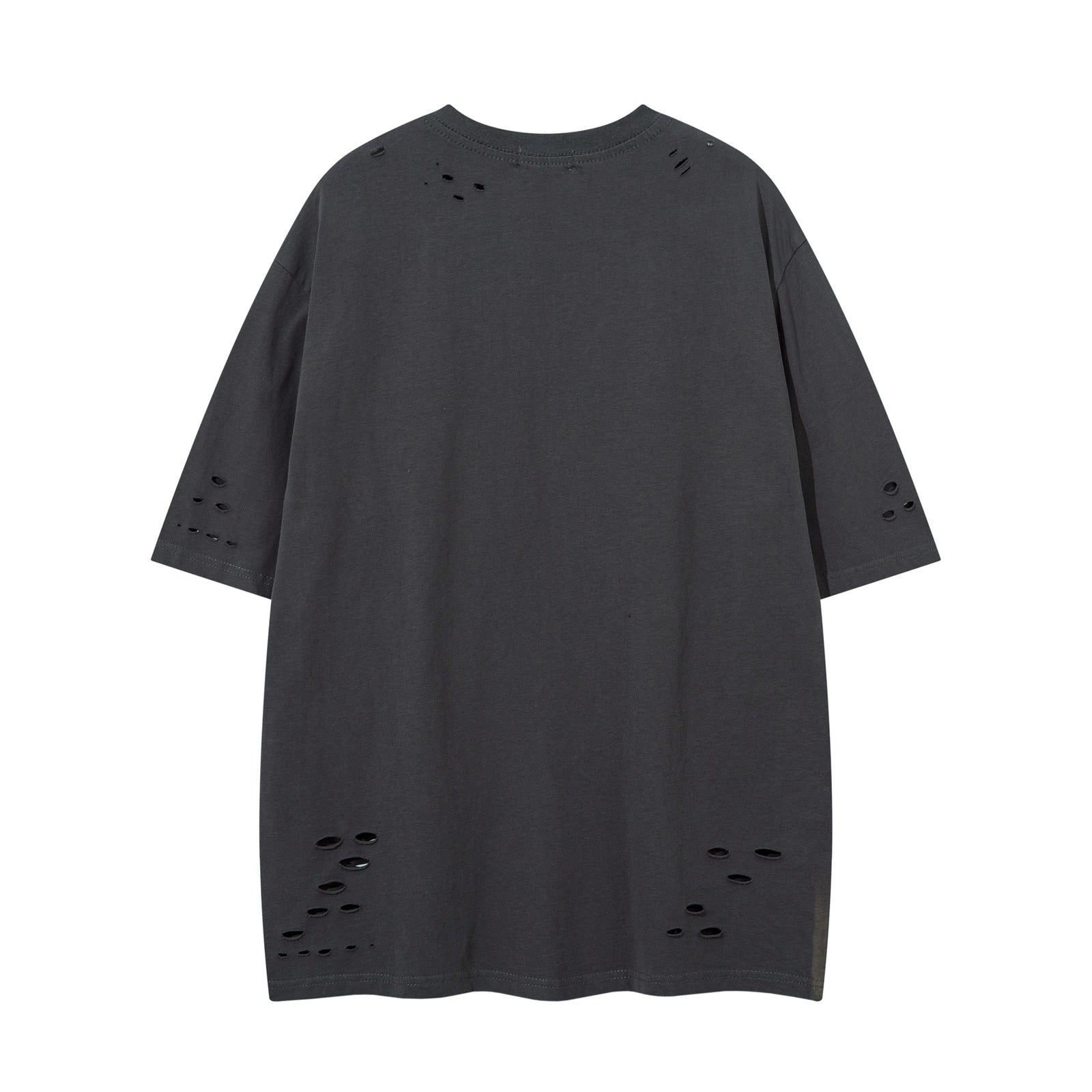 Washed hole letter embroidery short sleeved T-shirt